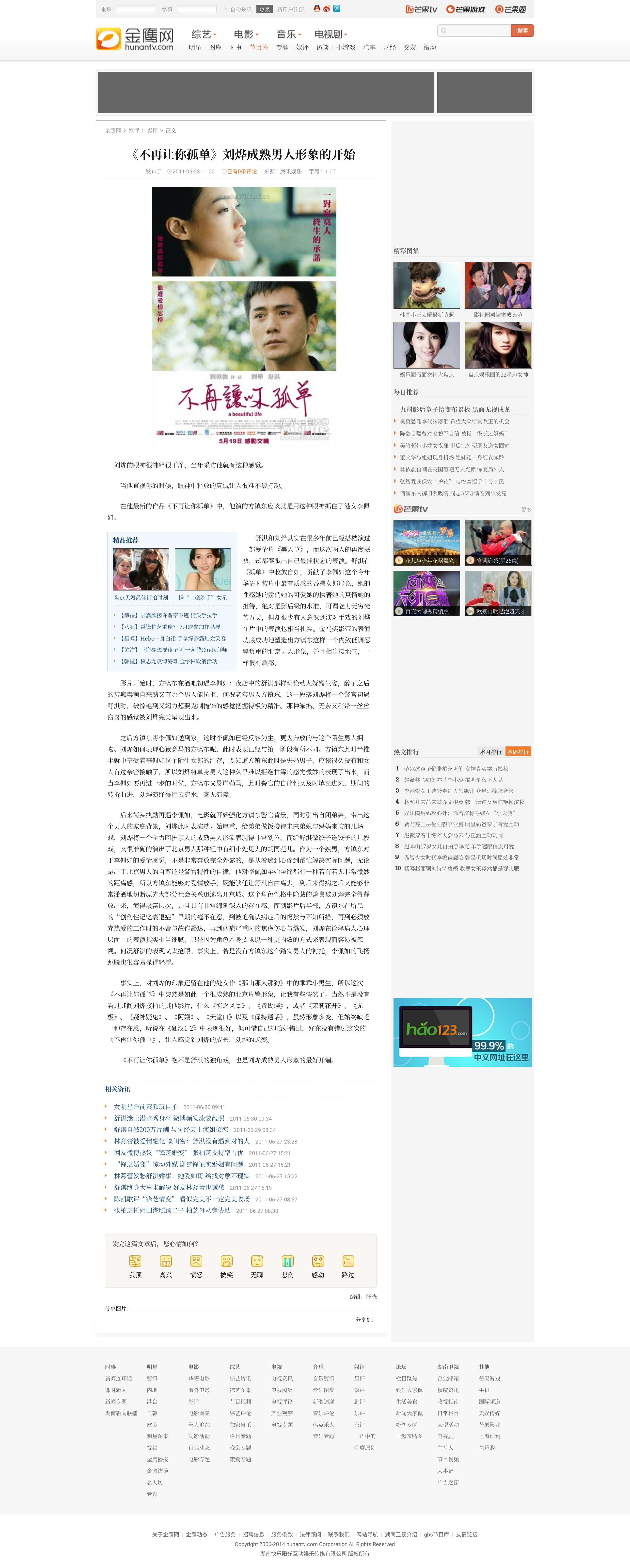 刘烨的眼神很纯粹很干净,当年采访他就有这种感觉;当他直视你的时候,眼神中释放的真诚让人很难不被打动(腾讯控股娱乐评)